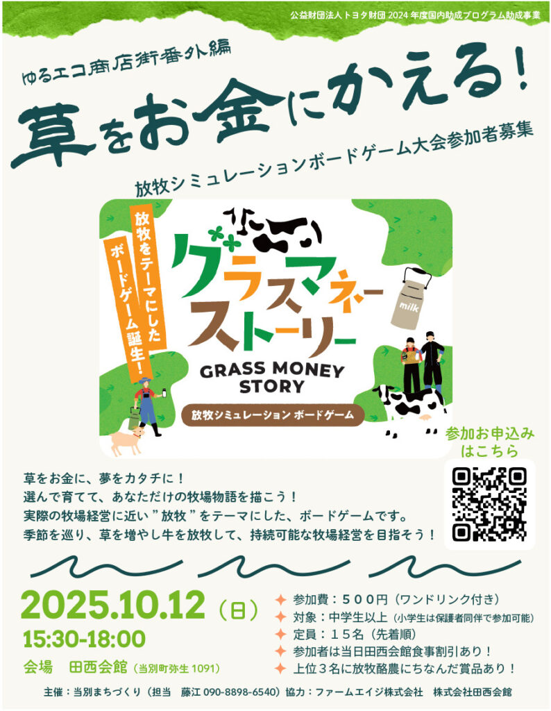 参加者は当日田西会館食事割引あり!上位3名に放牧酪農にちなんだ商品あり!